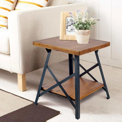 43'' Metal Legs Rustic Coffee Table, Solid Wood Tabletop