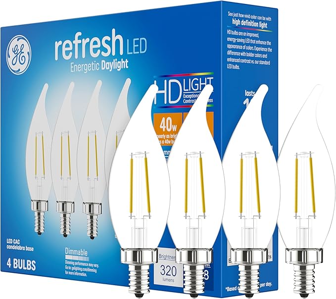 GE Refresh LED Light Bulbs, 40W, Daylight Candle Lights, Clear Decorative Light Bulbs, Small Base (4 Pack)