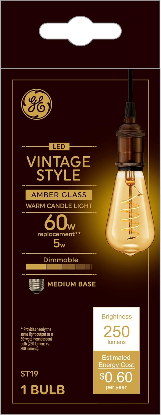 GE Vintage Style LED Light Bulb, 60 Watt, Amber Finish, ST19 Edison Style Bulb (1 Pack)